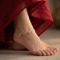 Made from 92.5% sterling silver, this payal blends minimal design with sparkle. Small beads line the base, while three ring-shaped charms shine with tiny stones. The layout is simple and neat. It’s a silver payal with charm rings, bead accents, and gemstone sparkle designed for a fresh, clean finish.