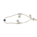 This anklet crafted in 92.5 sterling silver features a snake?style chain decorated with flower charms made of circular loops. A bright blue evil eye bead adds a pop of color, while polished silver beads balance the design. The clasp and '925' charm tag complete the piece with fine detail.