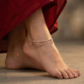 This 92.5% sterling silver payal with rose gold detailing features tiny beads spaced along a sleek base. Each piece carries a floral-shaped charm with cut-out design, flanked by oval rose gold beads. It’s a silver payal with floral charm, rose gold accents, and bead detailing built for soft sparkle and symmetry.
